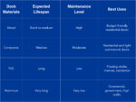 Here is how durability usually shows up across common dock material options: